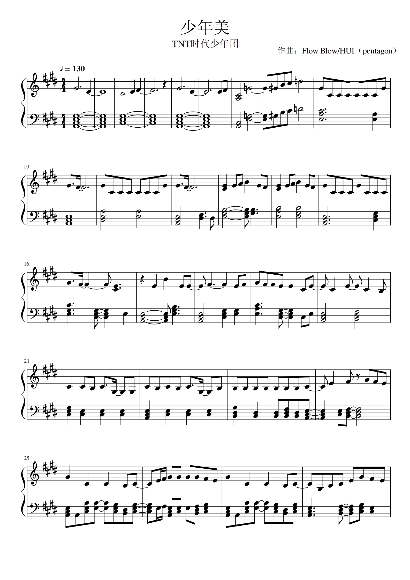 音频-《少年美》曲谱 - E调编配 - 钢琴谱(独奏)版