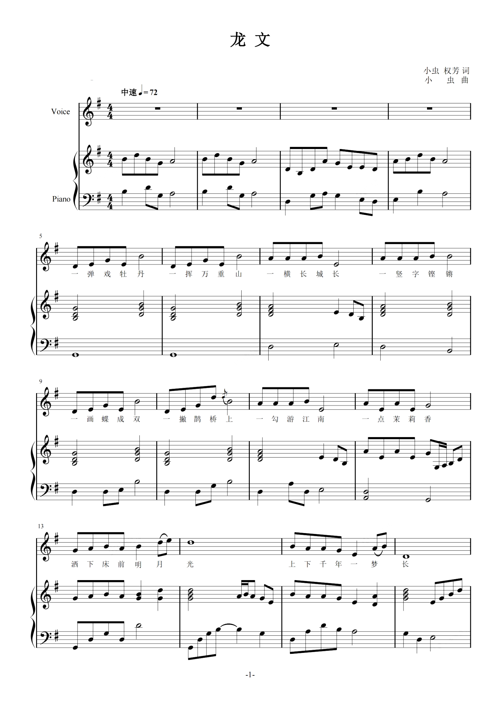 音频-《龙文》曲谱 - G调编配 - 钢琴谱(弹唱)版