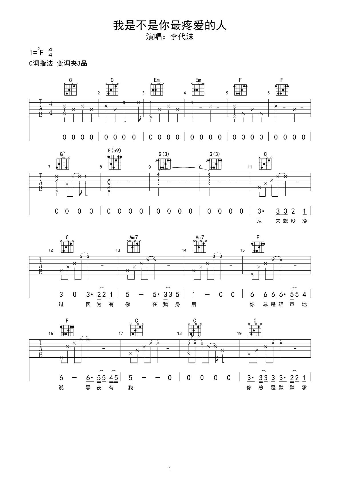 解锁《我是不是你最疼爱的人》曲谱 - C调编配 - 弹唱版